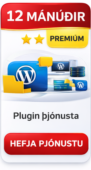Þjónusta (virtuál) í 12 mánuði. Plugin innifalið.